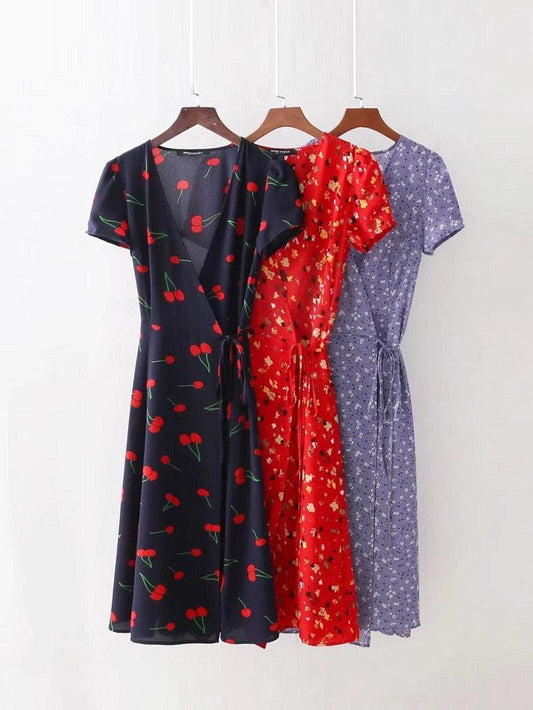 Women Lacing Up Waist Slit Mid Long Dress Slim Fit Summer Dresses 2 Colors Wrap Dress 2u30