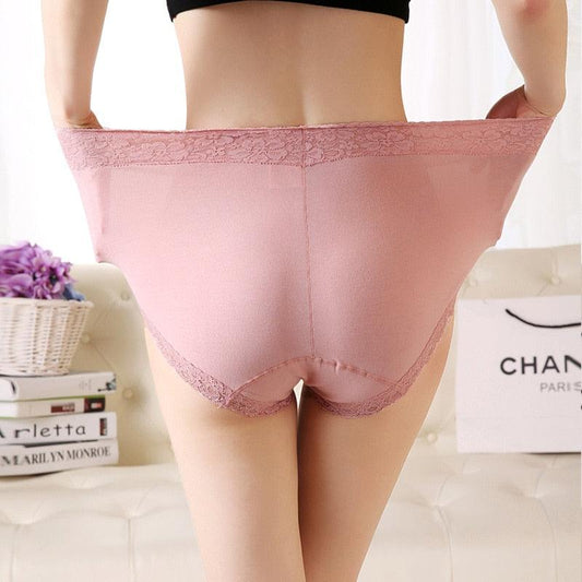 Women Plus Size Panties - High Waist Cotton Briefs Sexy Lace Underwear - Comfortable Breathable Lingerie (TSP2)