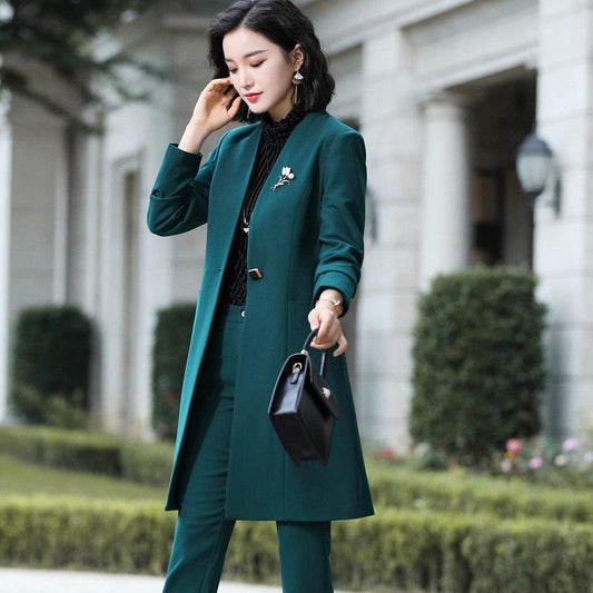 Women Pant Suit - Elegant V Neck Long Jacket Pant - 2 Piece Suit