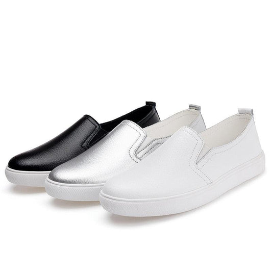 Women's Genuine Leather White Vulcanized Shoes - Flats Loafers Slip On (FS)(BWS7)