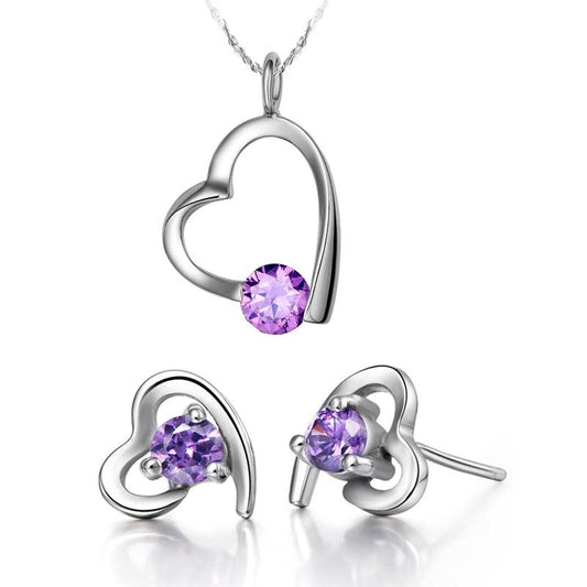 Women's Heart Necklace Earring Jewelry Set - Crystal Earrings Wedding Accessories (1U81)