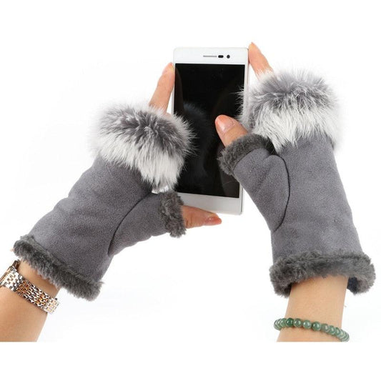 Women's Faux Rabbit Fur Hand Wrist Warmer Half Finger Gloves - Winter Glove - 13 Colors (3U87)
