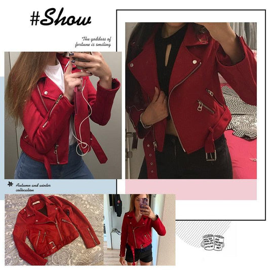 Womens Faux Pu Leather Suede Short Jacket Zipper Women Motorcycle Coat Fashion Biker Jackets