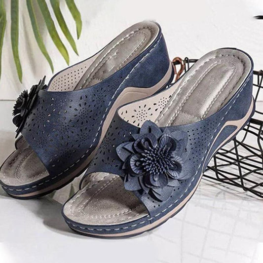 Women's Wedges Slippers - Flower Slides Ladies Slip On (1U39)