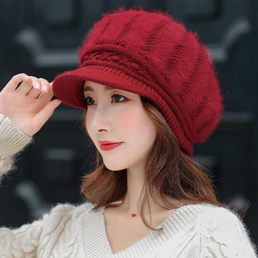 Women'S Winter New Thick Knit Hat - Rabbit Fur Blend Autumn Solid Warm Beanie