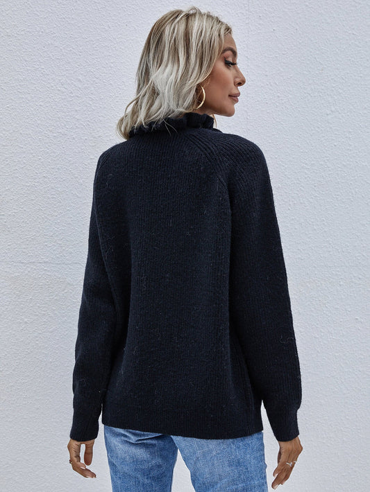 Button Detail Dropped Shoulder Rib-Knit Sweater