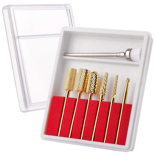 Carbide Nail Drill Bit Set 3/32 Gold Carbide Nail Drill Bit 7Pcs Remove Gel Polish Nail Gel Dip Powder Drill Bit (N3)(1U85)