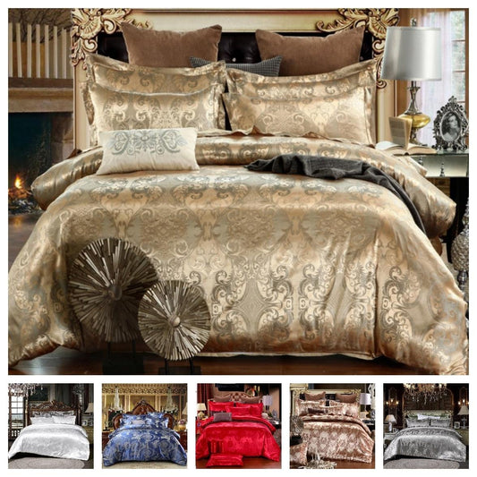 Luxury 2/3pcs Bedding Set Satin Jacquard Duvet Cover Sets 1 Quilt Cover + 1/2 Pillowcases (7BM)(8BM)(F63)