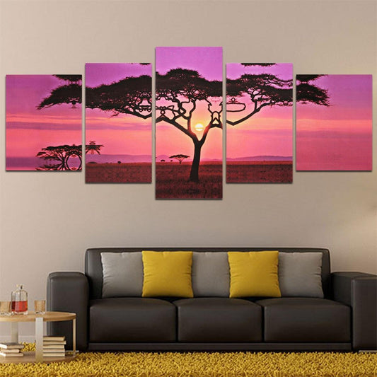 NEW 5 Panels Abstract Sunset Tree Oil Paintings Print On Canvas Posters Landscape Wall Art Pictures (AD1)(1U62)