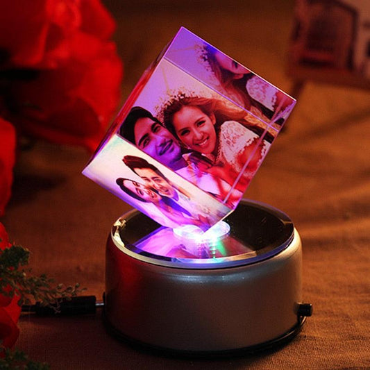 Square Shaped Rotating Crystal Printing Photo Album Glass Wedding Souvenir Birthday Gifts 3 Customized Photo Frame (AD3)