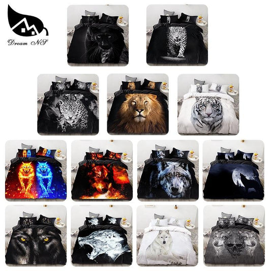 3pcs wolf tiger lion animal pattern bedding sets - super king cover pillowcase comforter textiles bedding set(7bm)(8bm)(9bm)(f63)