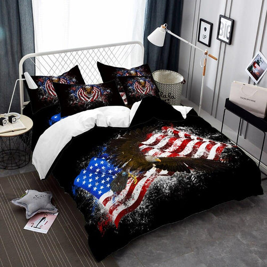 Colorful American Flag Bedding Set Military Bald Eagle Printed Duvet Cover Set Independence Day (8BM)(9BM)