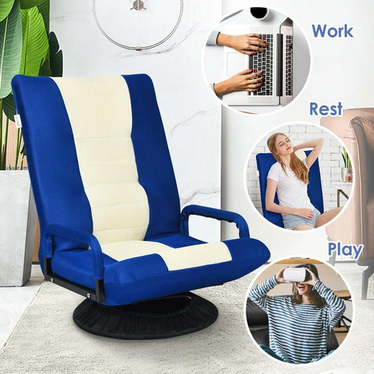 Gaming Floor Chair Folding Lazy Sofa 6-Position Adjustable Swivel w/Armrest (D67)(FW2)(1U67)