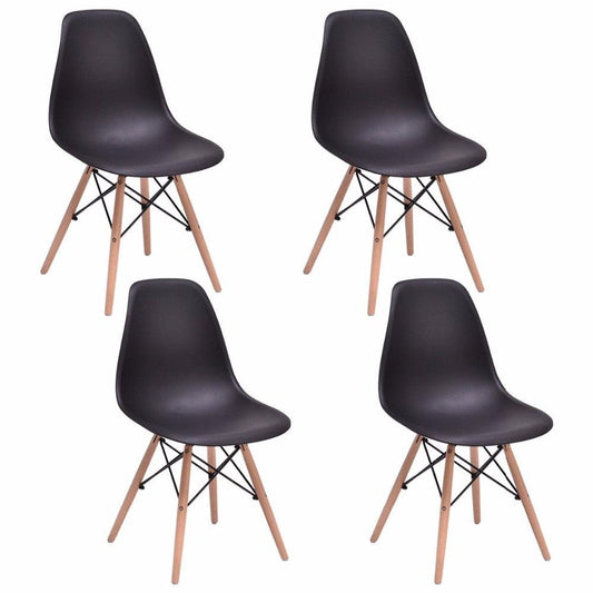 4PCS Mid Century Modern Dining Side Chair Wood Leg Black Dining Room Furniture (FW2)(1U67)