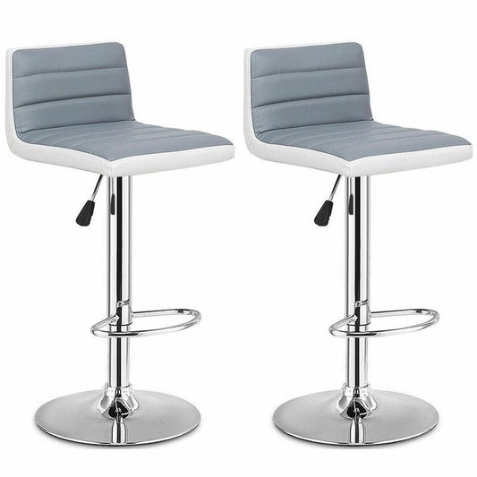 High Quality Set of 2 Adjustable Gray PU Leather Bar Stools Comfortable Height Adjustable Swivel 360 Degrees Chairs (FW2)(1U67)