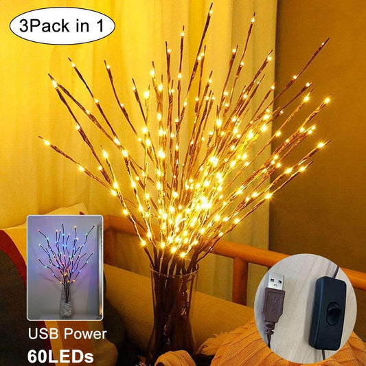 Willow Brown Branches Light - LED Branch Christmas vase Decoration Lights USB Plug-in with Switch 3pcs 60 Bulbs (LL5)1(1U58)