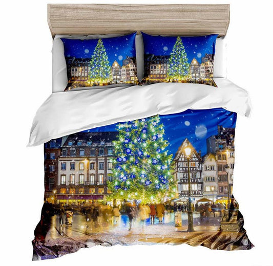 Winter Christmas Bedding Set Polyester King Queen Duvet Cover Set (B&6)(7BM)(8BM)(1U63)(1U66)