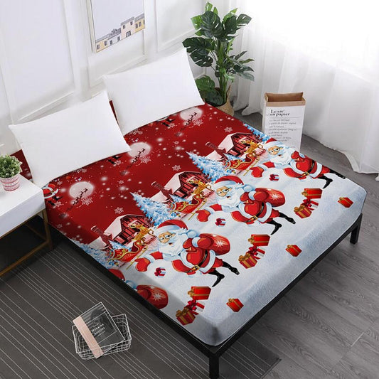 Merry Christmas Bed Sheets Red Santa Claus Cartoon Fitted Sheet Festival - Elastic Band (5BM)(B&6)