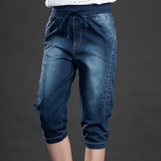 High Waist Jeans - Woman Stretch Summer Denim Pants - Plus Size - Capri Jeans For Women - Short Harem Pants