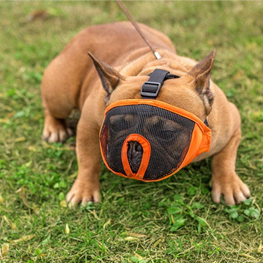 Anti Bark Bite Chew Pug French Bulldog Muzzles - Adjustable Breathable Mesh Breathable Short-nose (4W1)