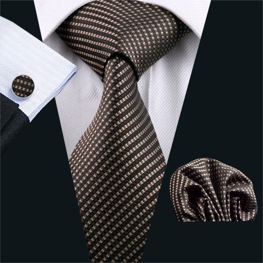 Fashion Classic Tie - Striped Silk Jacquard Woven Necktie Hanky Cufflinks Set (2U17)