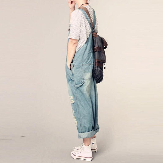 Great Women's Casual Overalls - Lady Oversized Hole Ripped Baggy Strap Jeans (TBL1)