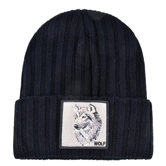 Men's Beanie With Wolf Patch - Autumn Knitted Winter Soft Knit Bonnet Beanies (MA8)
