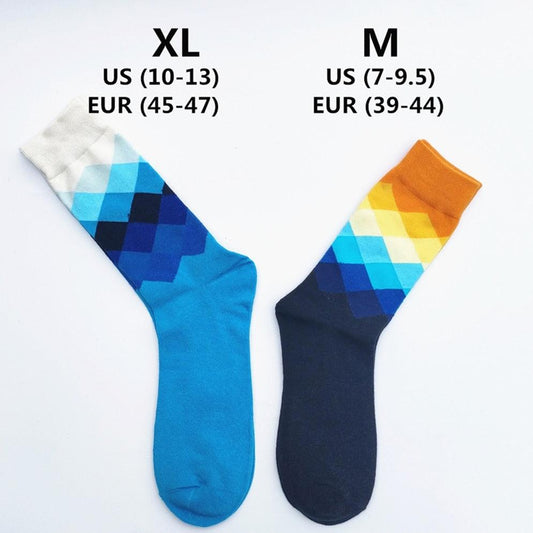 Casual Men's Socks - New Socks Fashion Design Plaid Colorful Happy Business Party Dress Cotton Socks (TG8)(T6G)(F92)