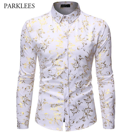 Printed Floral Casual Long Sleeve Shirt - Fashion Nightclub Party Slim Button Men's Shirt (CC1)