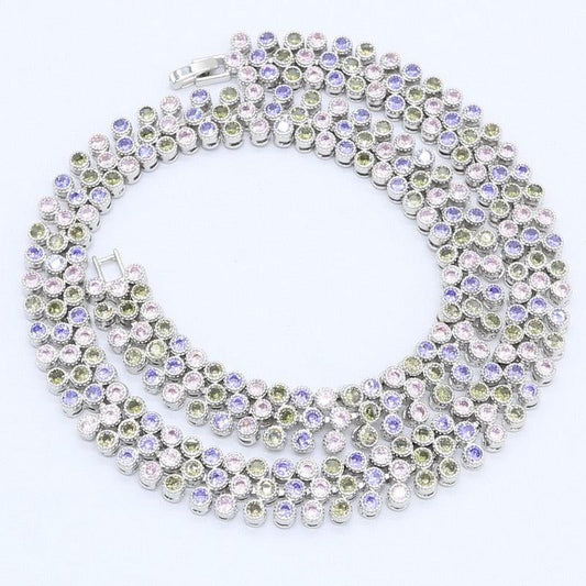 Trending Geometric Silver Color Necklace - Women Multicolor Zircon Jewelry (5JW)