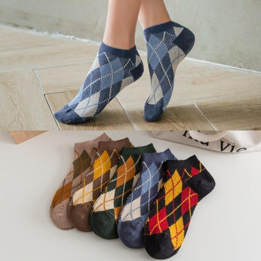 Trending Women's Socks - Happy Combed Cotton Casual Plaid Style Colorful Socks (2WH1)(3WH1)1