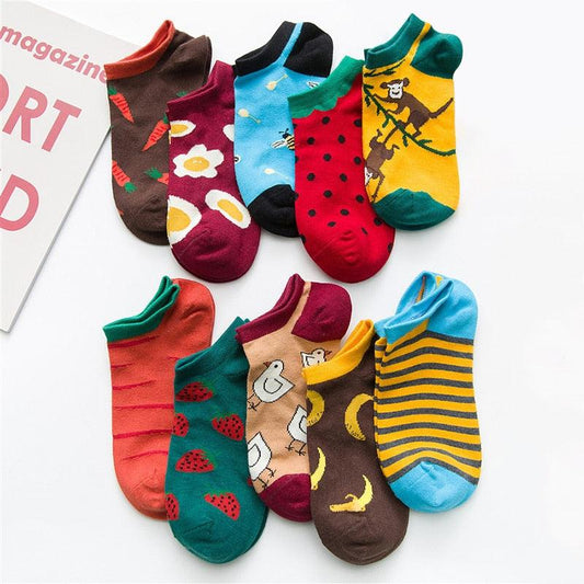 Women'S Cotton Happy Funny Invisible Socks - Print Cartoon Animal Casual Short Socks 5 Pairs/Lot