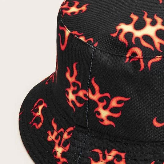 New Fire Pattern Bucket Hat - Girls Foldable print Cap - Summer Caps (2U44)