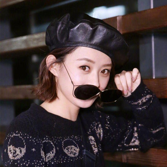 Fashion Felt Pu Leather Beret Hat - Women Cap - Female Ladies Beanie