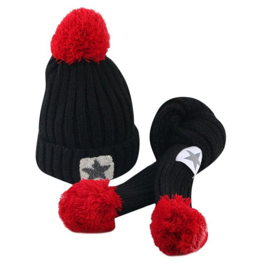 Great Winter Knit Hat Beanie Hairball Cap Scarf Set (3U87)