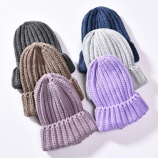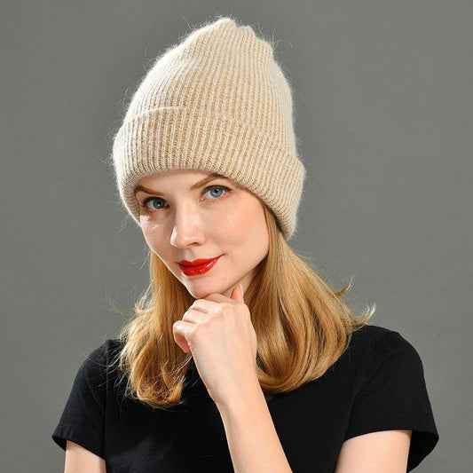 New Solid Color Wool Cotton Beanie - Striped Women Innocent Winter Warm Hat