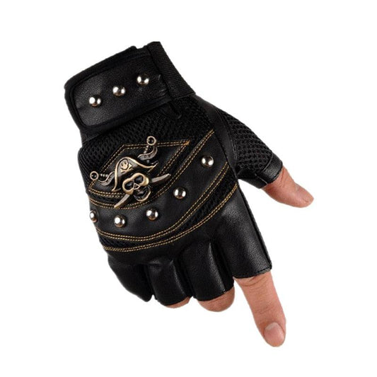 Long Keeper Skulls Rivet Pu Leather Fingerless Gloves - Fashion Hip Hop Gym Gloves