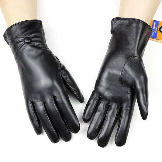 Cute Leather Gloves - Sheepskin Elastic Thin Glove Set