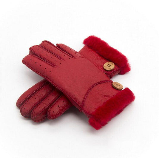 Super Warm Women Winter Warm Real Leather Gloves - Female Sheep Fur Gloves