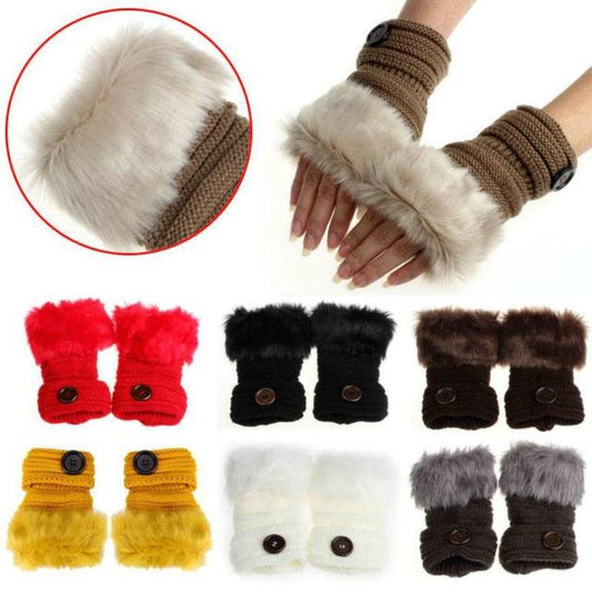 Great Women's Gloves - Warm Winter Faux Rabbit Fur Wrist Fingerless Gloves (3U87)