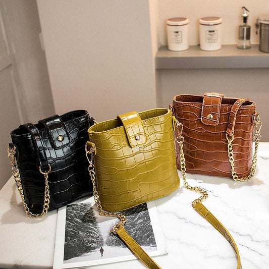 Great Crocodile Pattern Mini Bucket Bag -Shoulder Luxury Handbags Pu Leather