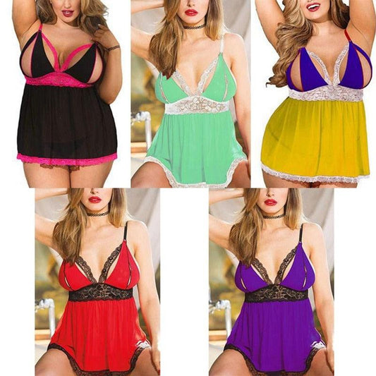New Erotic Lingerie - Deep V-neck Lace Sling Nightdress - Backless Sexy (2U29)