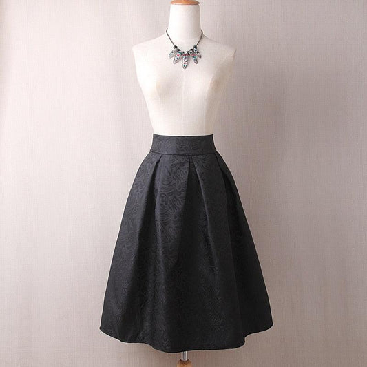 Summer Black Red Jacquard Pleated Ball Gown Skirt Skater Ladies Midi Skirts Plus Size Office Wear Tb7