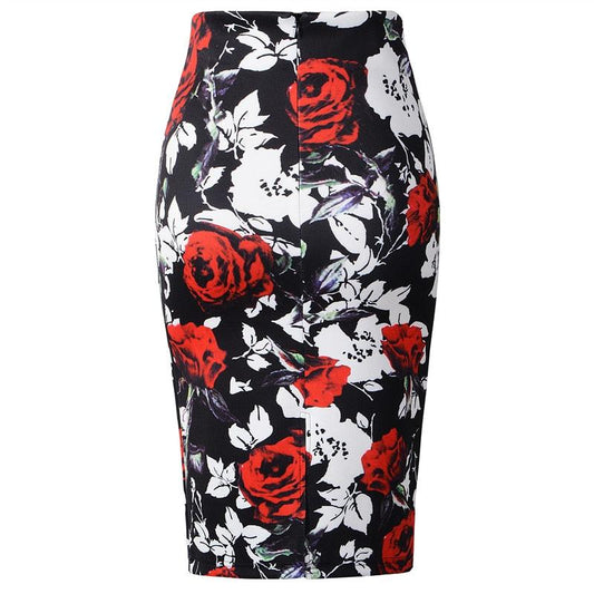 Gorgeous Retro Red Rose Floral Pattern Printed Women Sexy Skirt - Midi Pencil Skirts - Plus Size - Summer Office Work