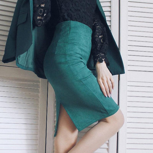 Great Autumn Women Skirts - Ladies Faux Suede High Waist Pencil Skirt - Split Stretchy Sexy Skirts (2U22)(2U20)