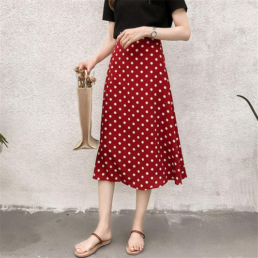 Trending Spring Chiffon Skirt - Women High Waist Midi Skirt - Summer Elegant Dot Print - Office Skirts (2U22)(2U20)