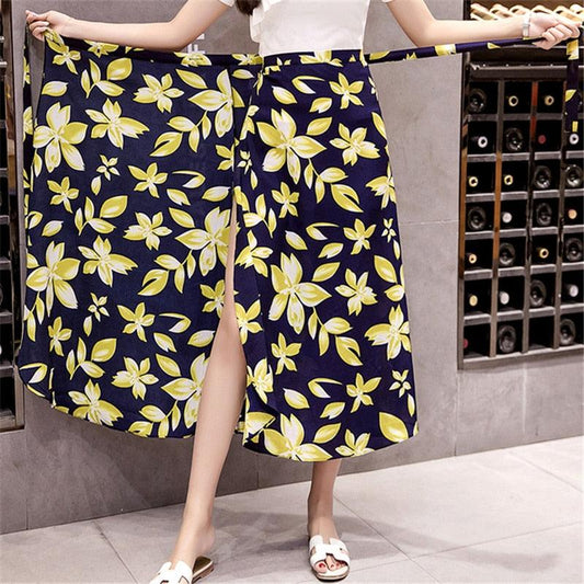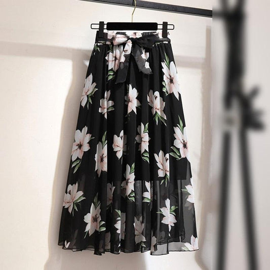 Great Floral Print Long Skirts - Printed Chiffon Skirt - Summer Women Streetwear Drawstring Elastic Waist Midi Skirt