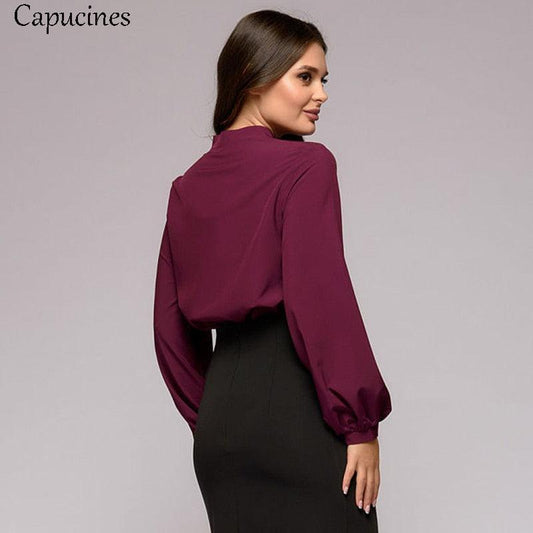 Gorgeous Blouse - Long Sleeve Double V-neck Women Tops -Solid Office Shirt (TB1)