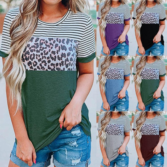 Women Summer O-Neck Short Sleeve T shirts - Loose Sexy Leopard stripe - Plus Size Tops (D19)(TB2)