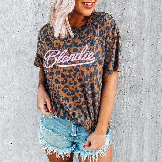 Cute Leopard T Shirt - Blondie Letter Graphic Top -